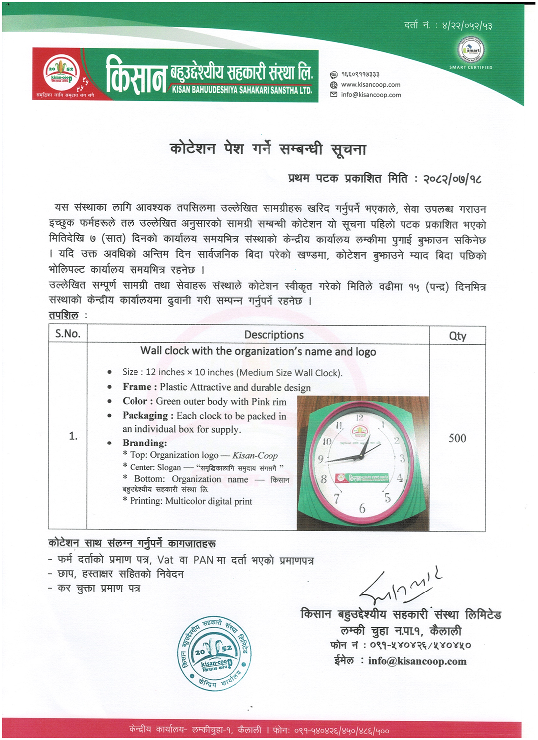 कोटेशन पेश गर्ने सम्बन्धि सूचना ।