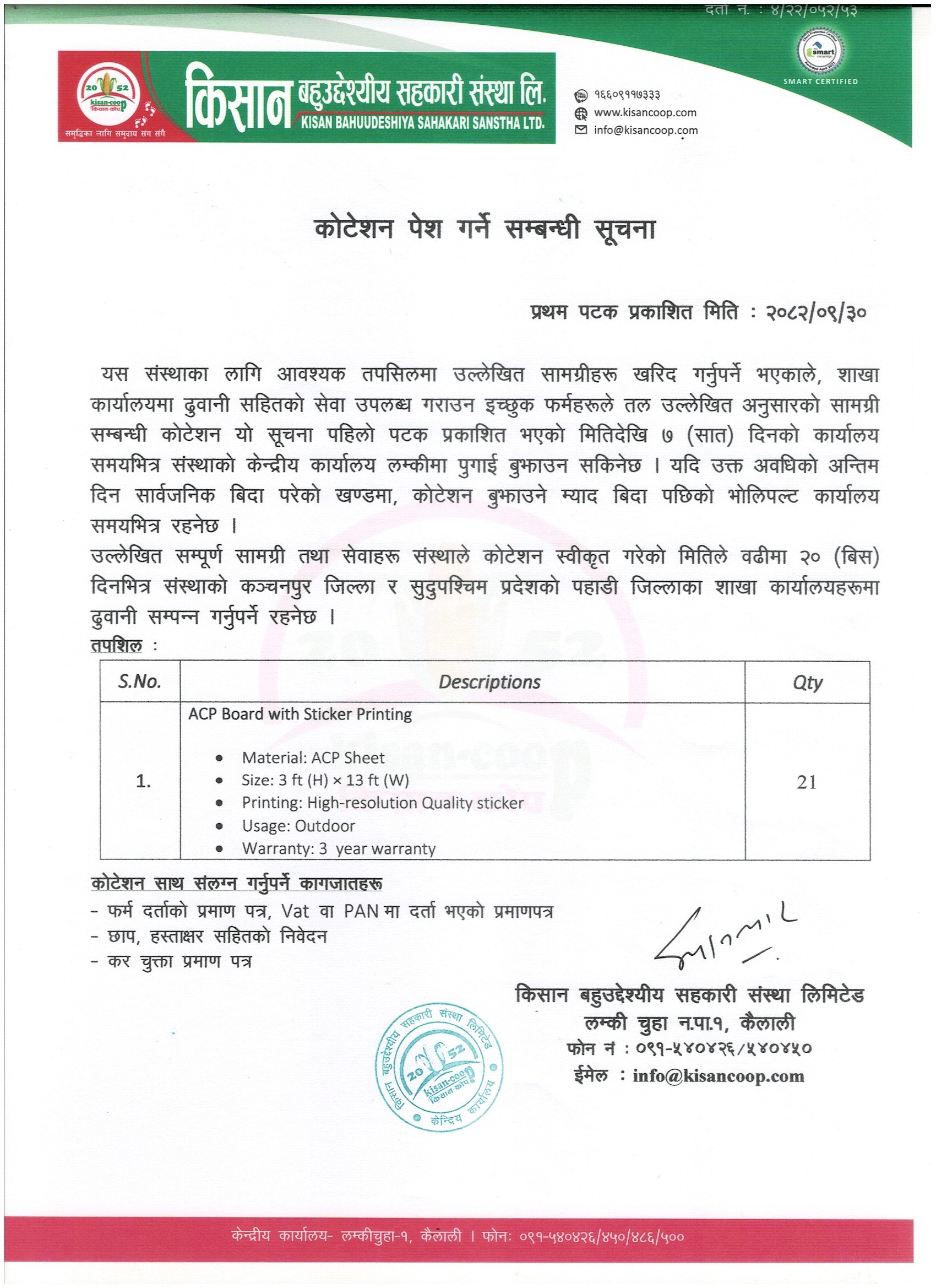 कोटेशन पेश गर्ने सम्बन्धि सूचना ।
