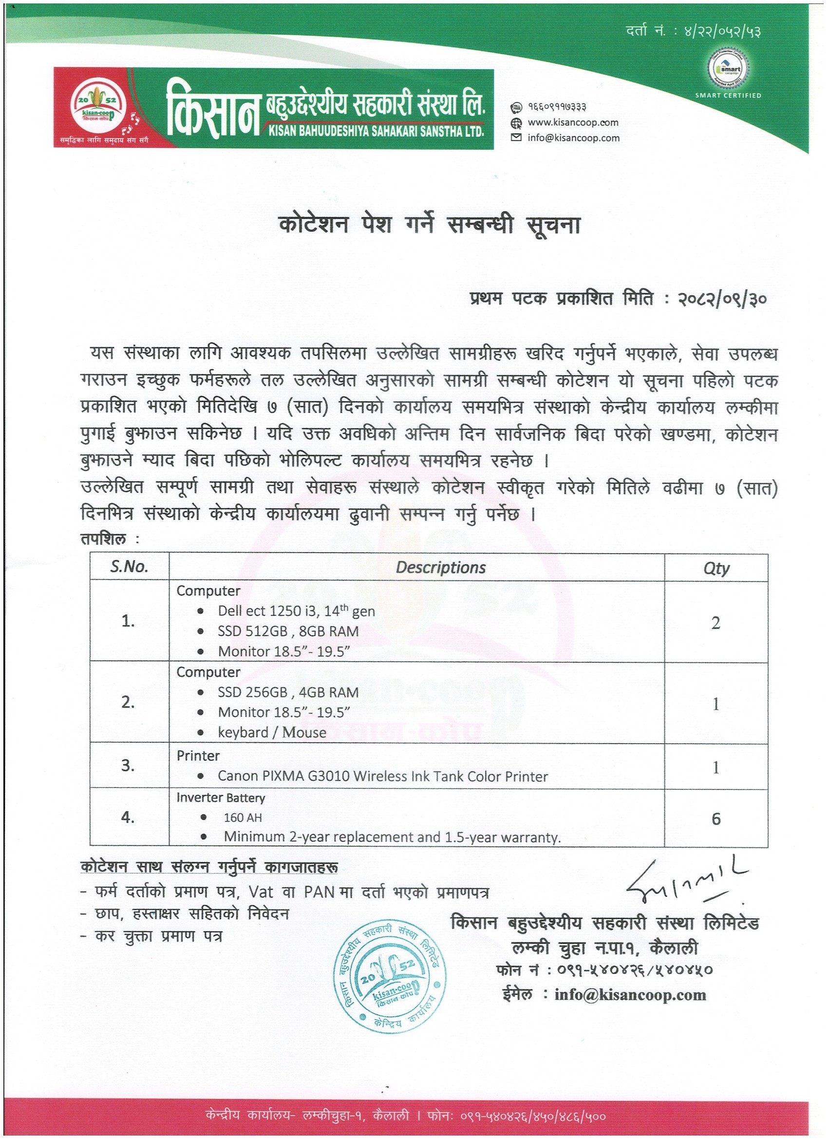 कोटेशन पेश गर्ने सम्बन्धि सूचना ।