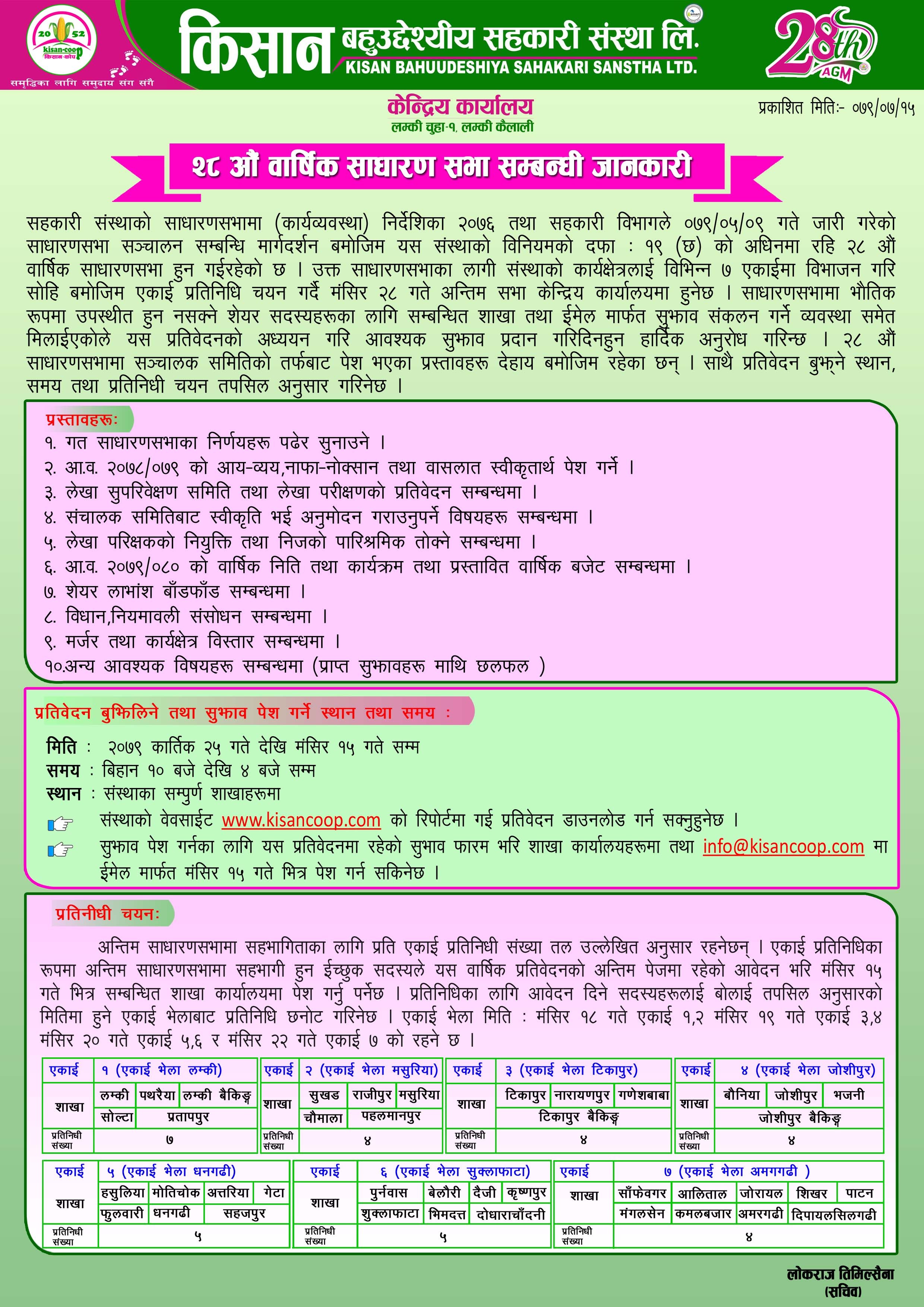 ३१ औं वार्षिक साधारणसभा / एकाई भेला सम्बन्धि सुचना !
