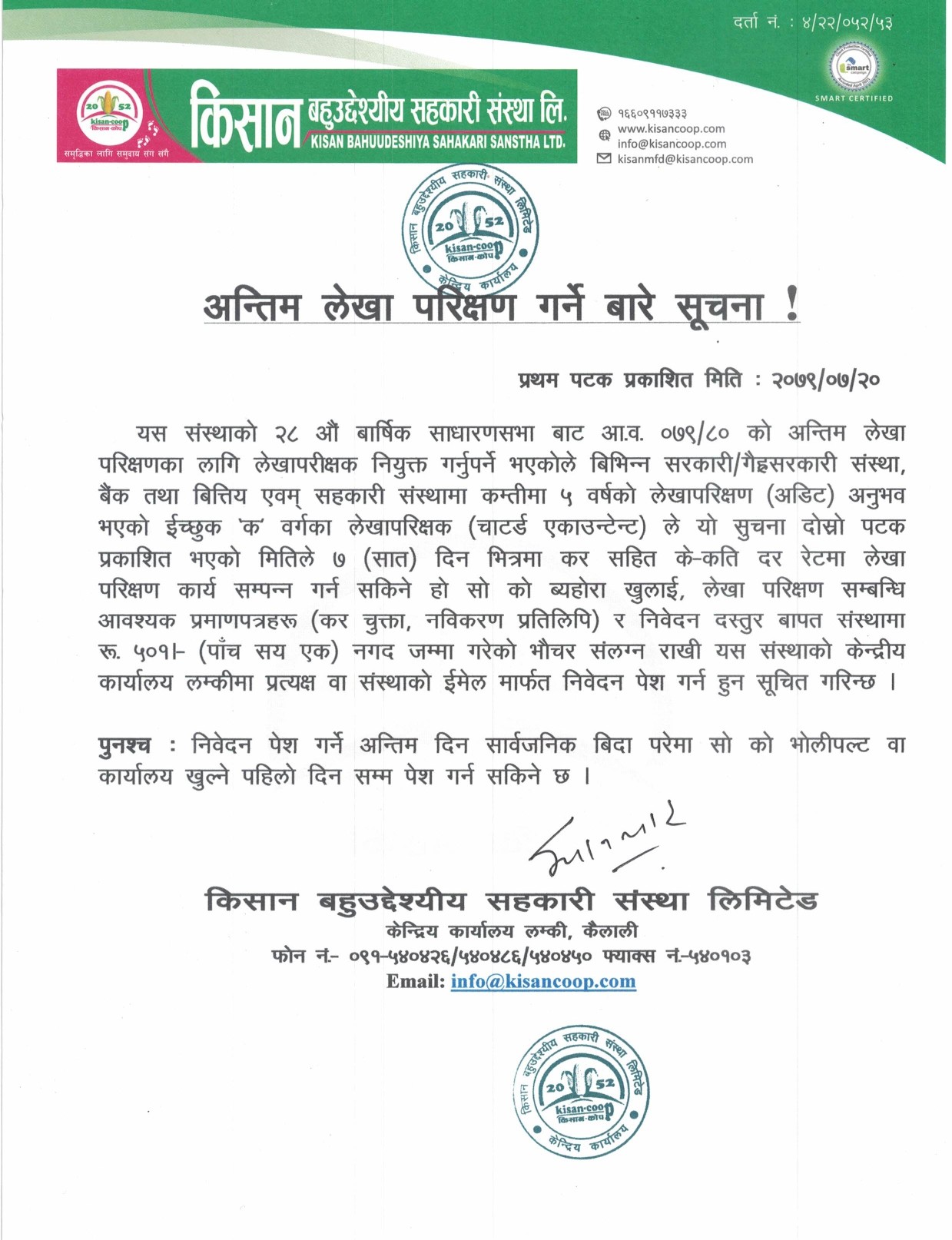 अन्तिम लेखा परिक्षण सम्बन्धि सूचना !