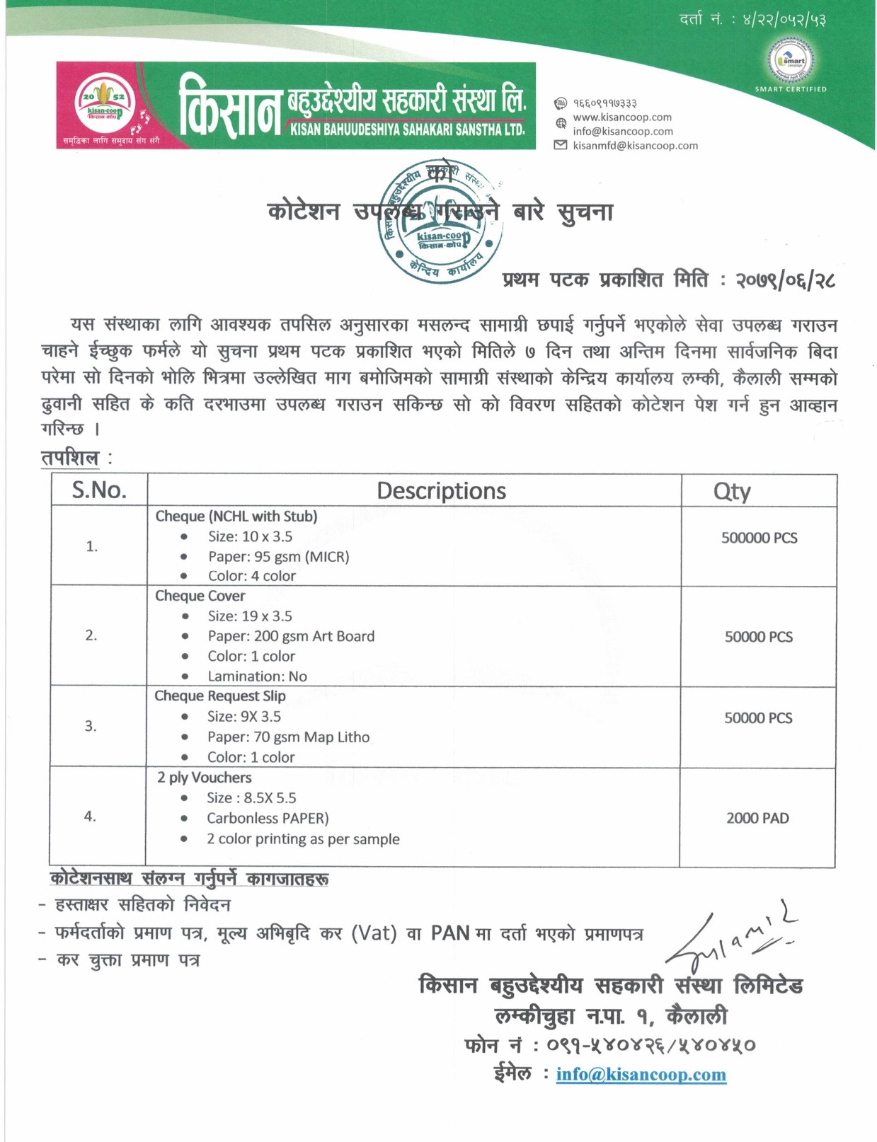 कोटेशन उपलब्ध गराउने बारे सुचना